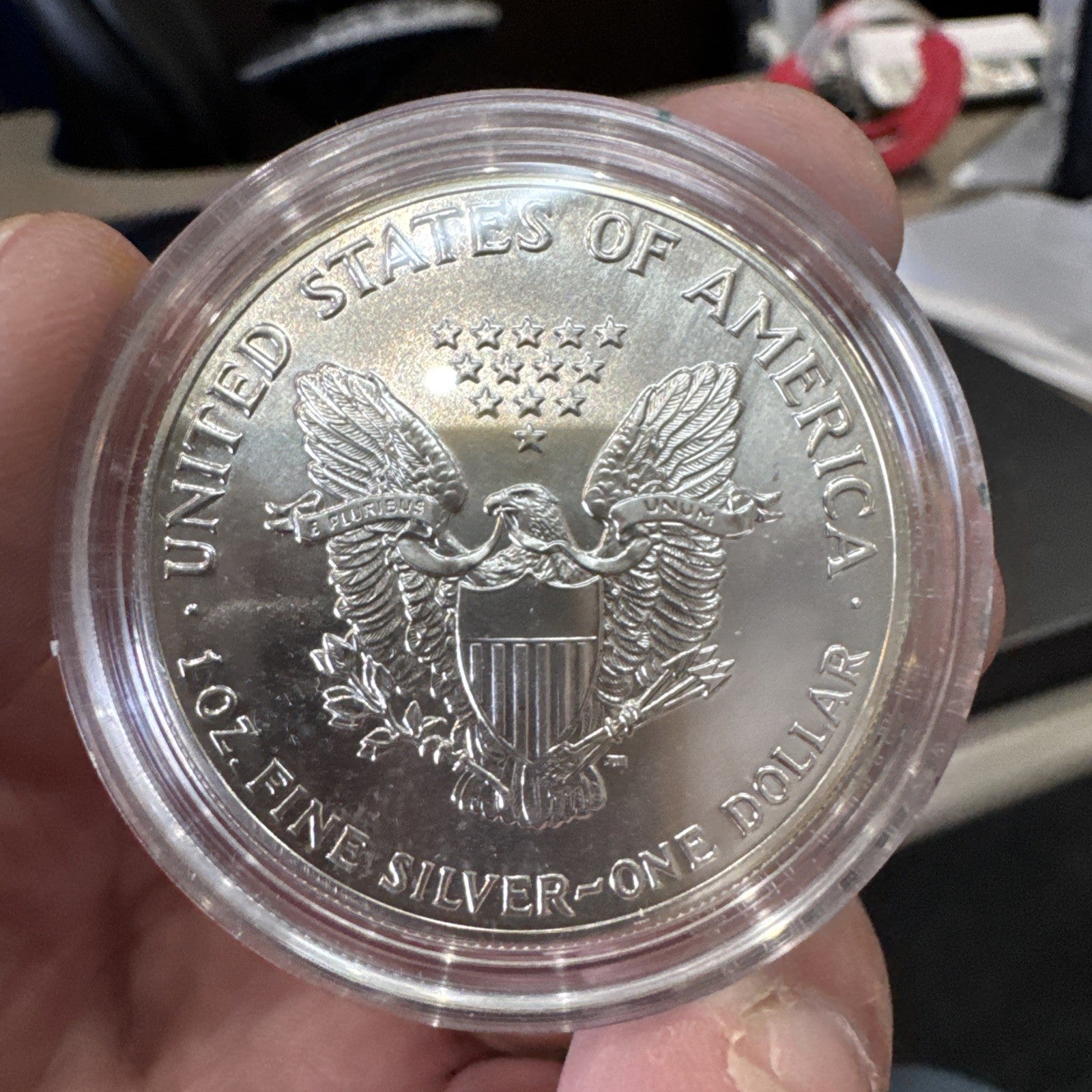 The product is a 1989 U.S. American Eagle One Ounce Silver Uncirculated Coin, featuring the iconic American Eagle design. This coin is made of silver, making it a valuable addition to any collection or investment portfolio. It comes with its original box for safekeeping and display. The coin is not certified, but its authenticity can be verified through various means such as its design and year of production.