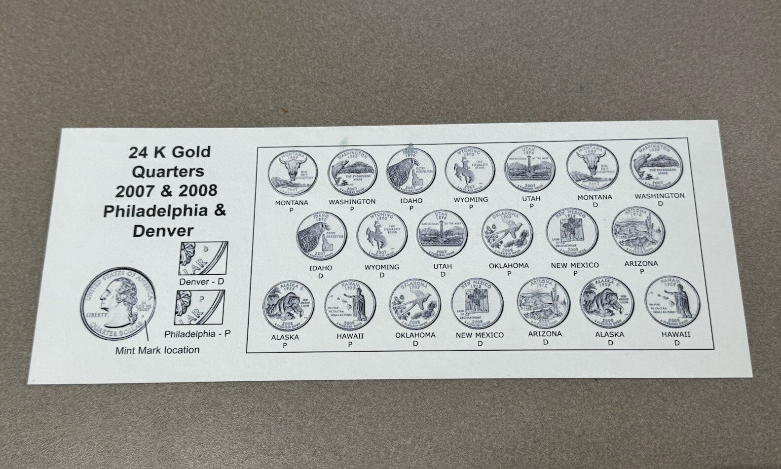 2007-2008 24kt Gold Plated US Mint State Quarters Set in Box