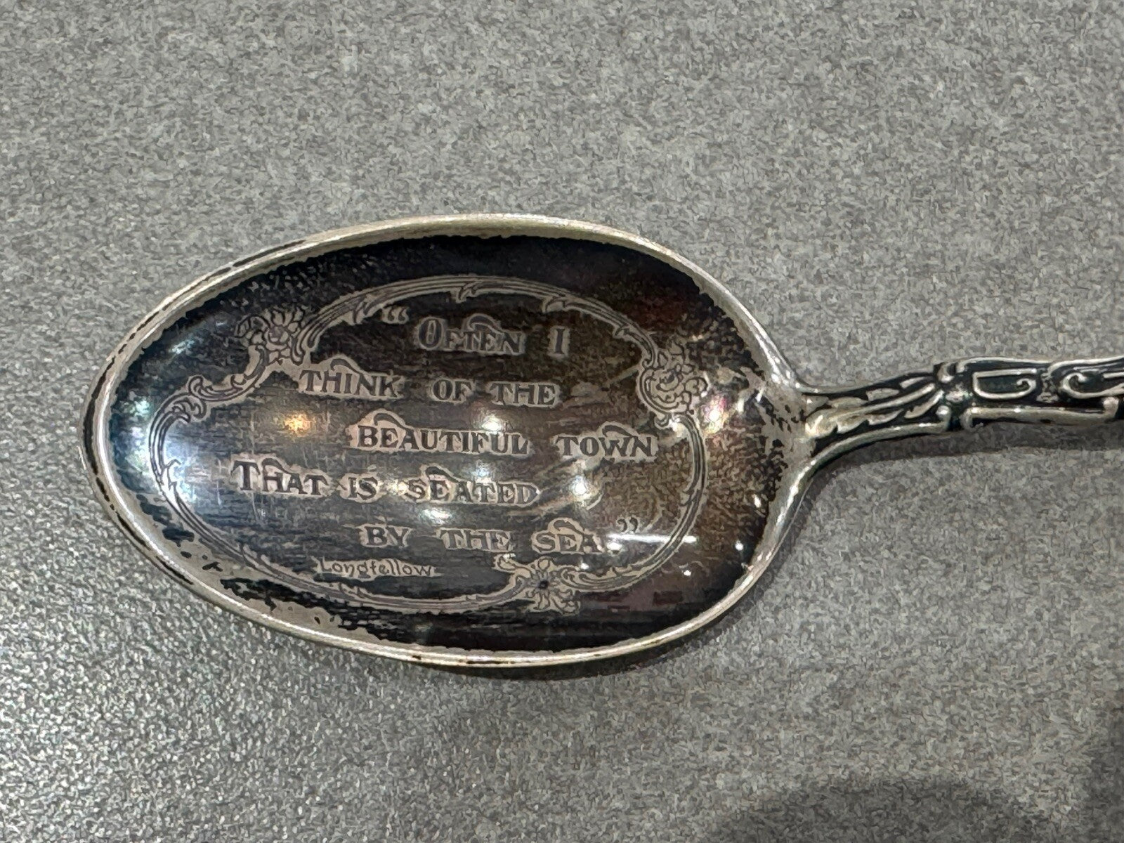 Antique Longfellow Portland ME Sterling Silver souvenir spoon, 28 grams 6”