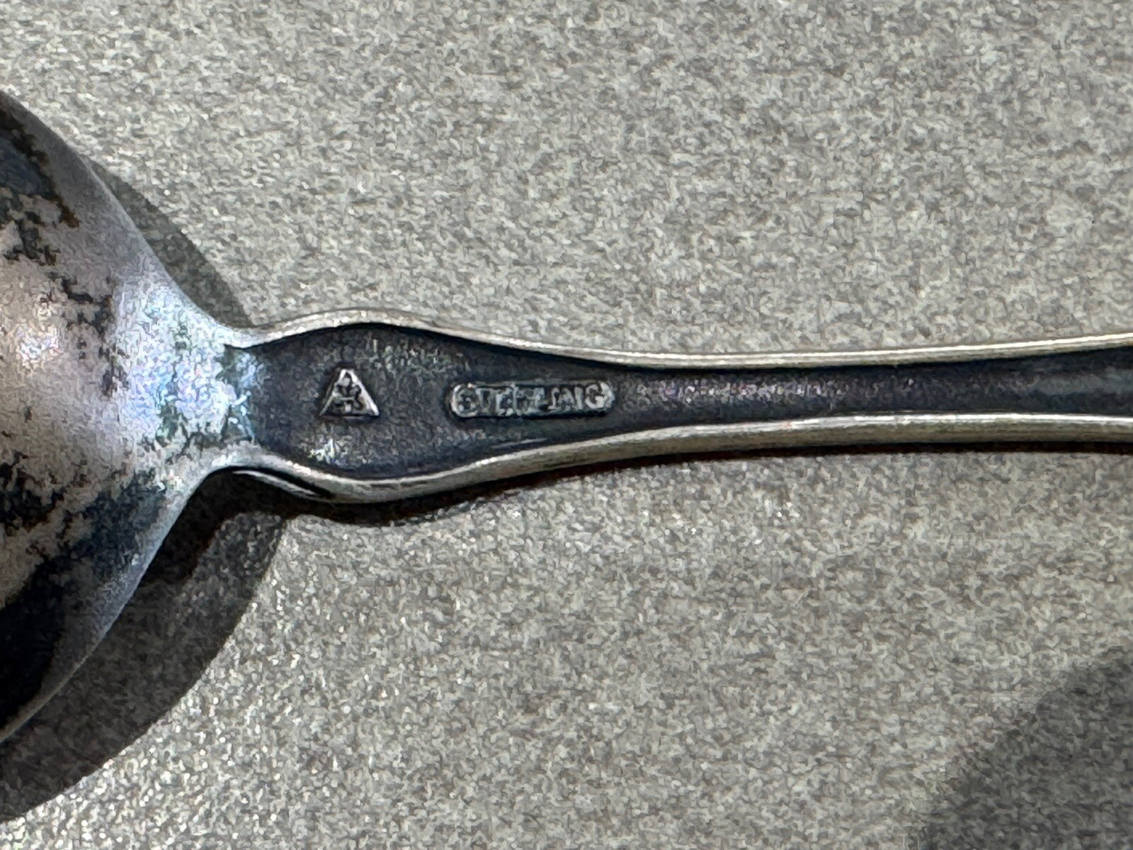 Own a piece of history with this antique Spokane Washington Sterling Silver Spoon. Engraved with intricate details, this souvenir spoon weighs 17.1 grams and measures 5.5 inches in length. Crafted from high-quality sterling silver, this spoon is a must-have for collectors and history enthusiasts alike.