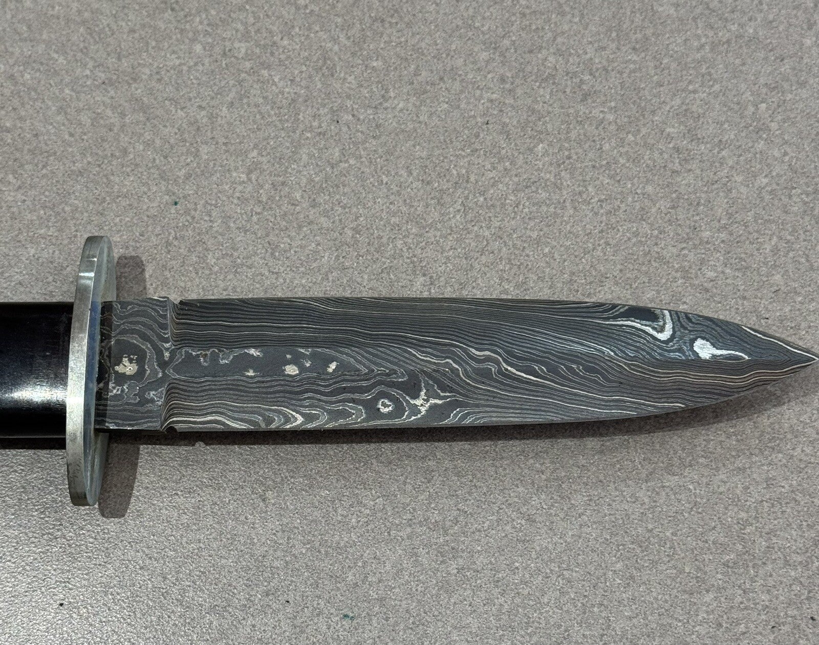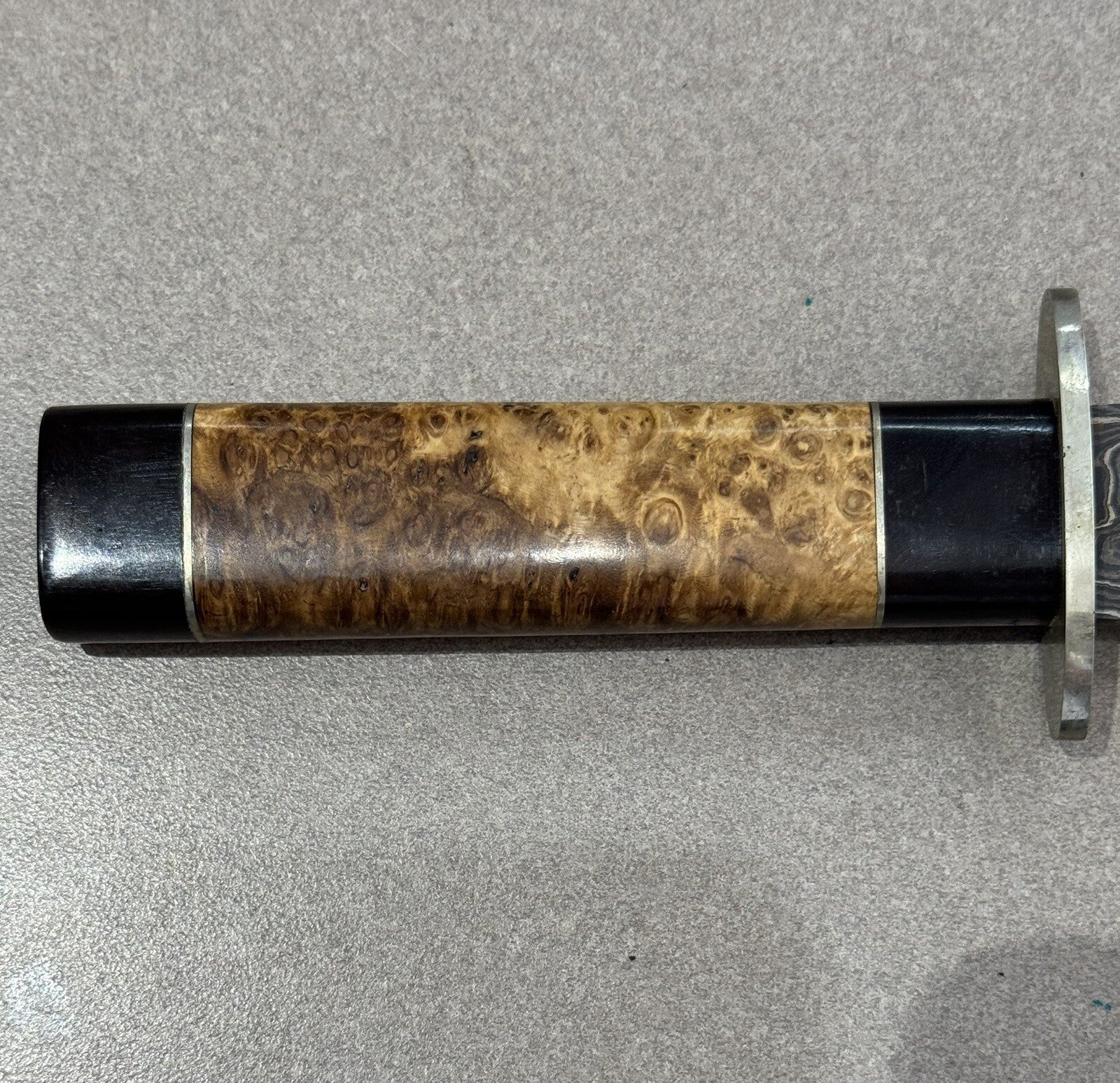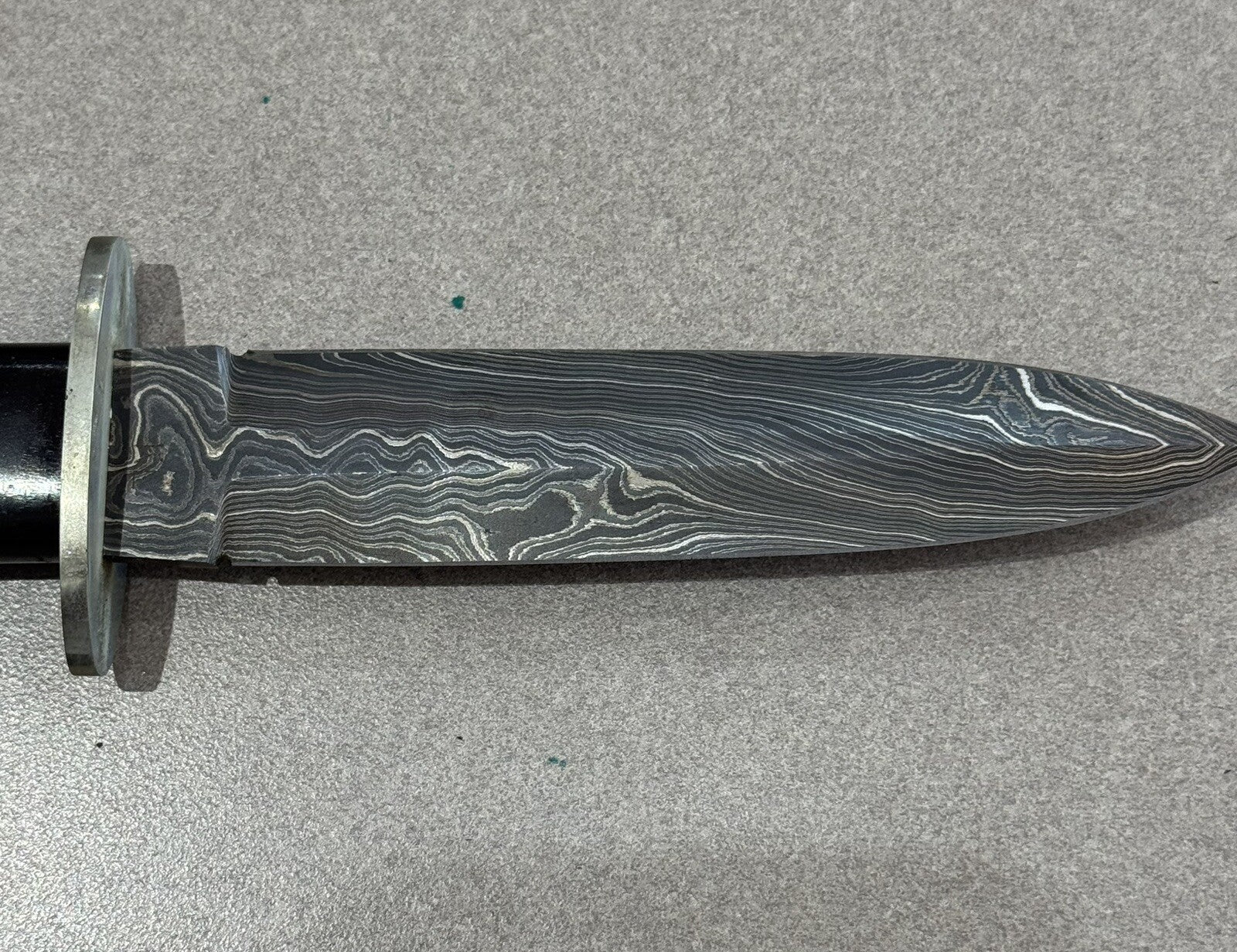 DAMASCUS STEEL BLADE KNIFE WITH CUSTOM SHEATH 5.5”BLADE 10“ FULL LENGTH 2 SIDED