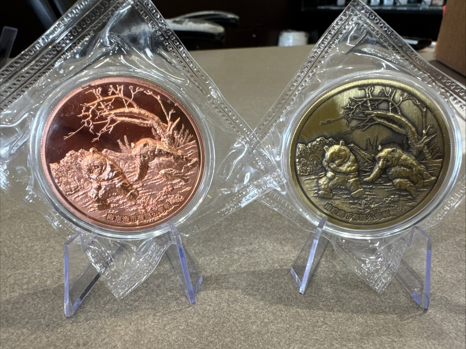 SEALED The Nanjing 2015 Panda Antique Copper Brass 2016 China coin set features a extremely limited mintage of these coins. These coins are composed of brass and were manufactured in China. Despite being uncertified, they hold value due to their unique design and limited availability.
