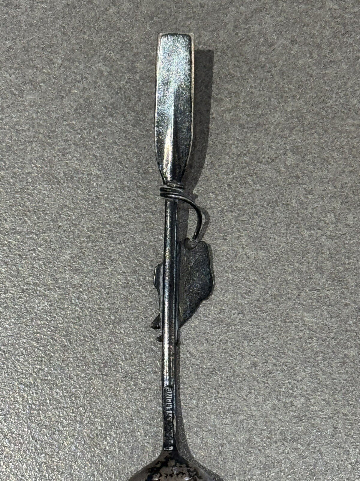 This beautiful souvenir spoon is a must-have for collectors and enthusiasts alike. Crafted from high-quality sterling silver, it features a unique design of a fish sailing that is sure to catch the eye. Weighing in at 7.9 grams and measuring 4 inches in length, this spoon makes a great addition to any collection or a perfect gift for someone special. Its intricate details and fine craftsmanship make it an excellent representation of Portland, Oregon's rich history and culture.