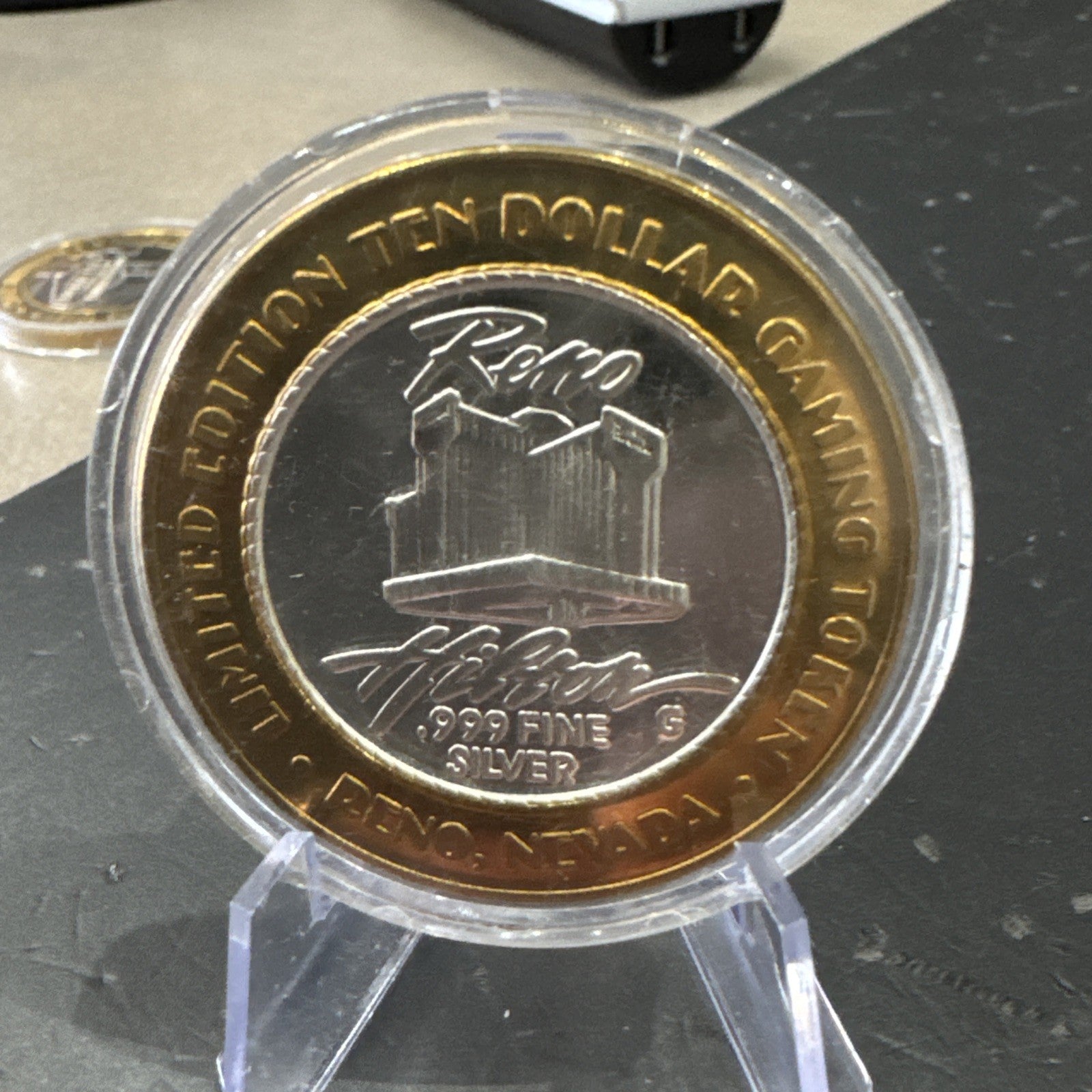 Reno Hilton $10 Gaming Token .999 Silver Center Year If The Dragon COLLECTABLE