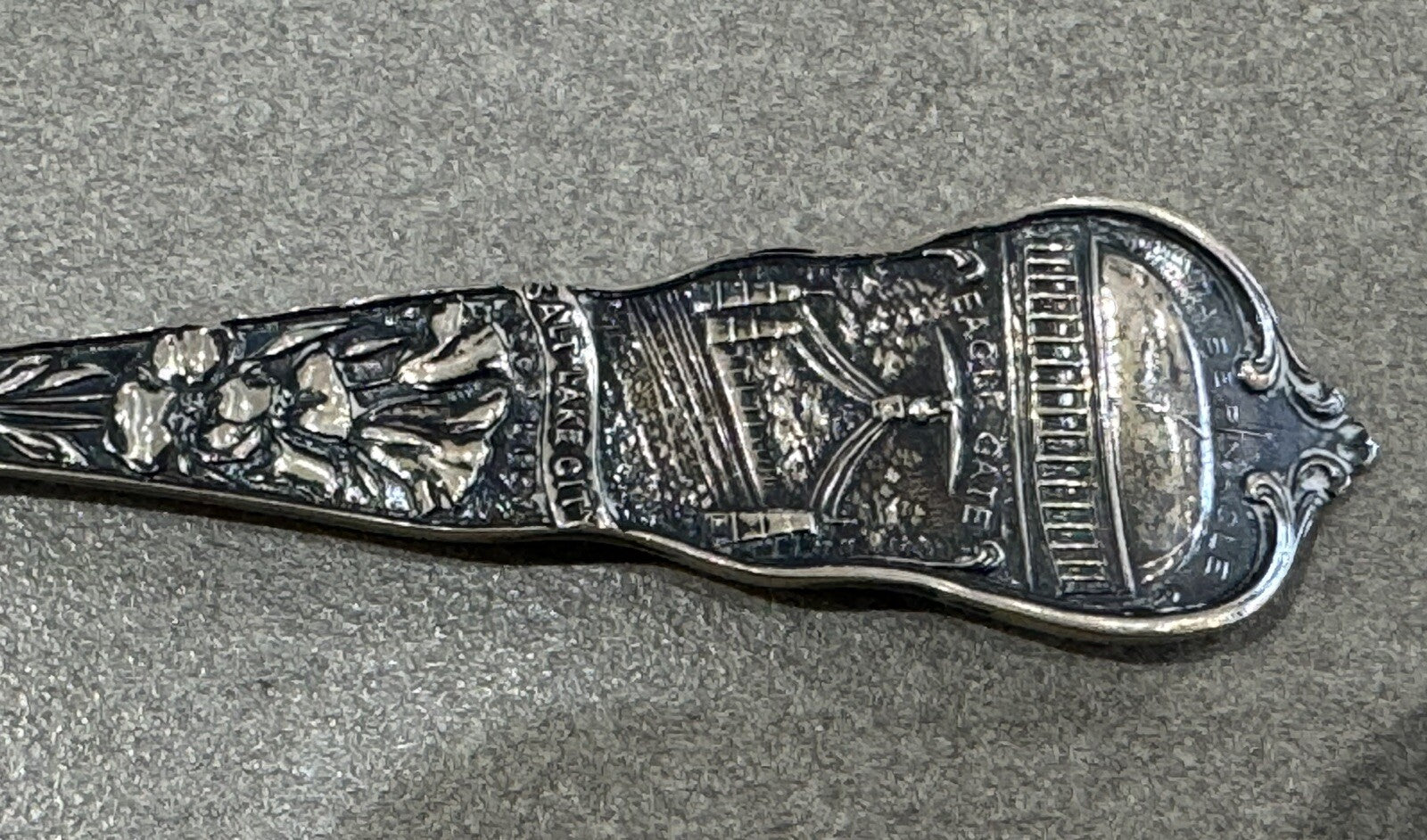 Sterling Silver Eagle Gate Salt Lake City Utah Souvenir Spoon 1910 23.2Gr 5 7/8”
