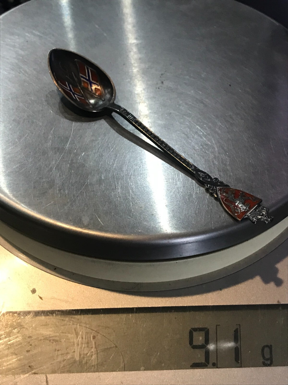 Vintage Sterling Silver NORWAY AKSEL HOLMSEN Enamel Souvenir Spoon 4.25" 9.1g