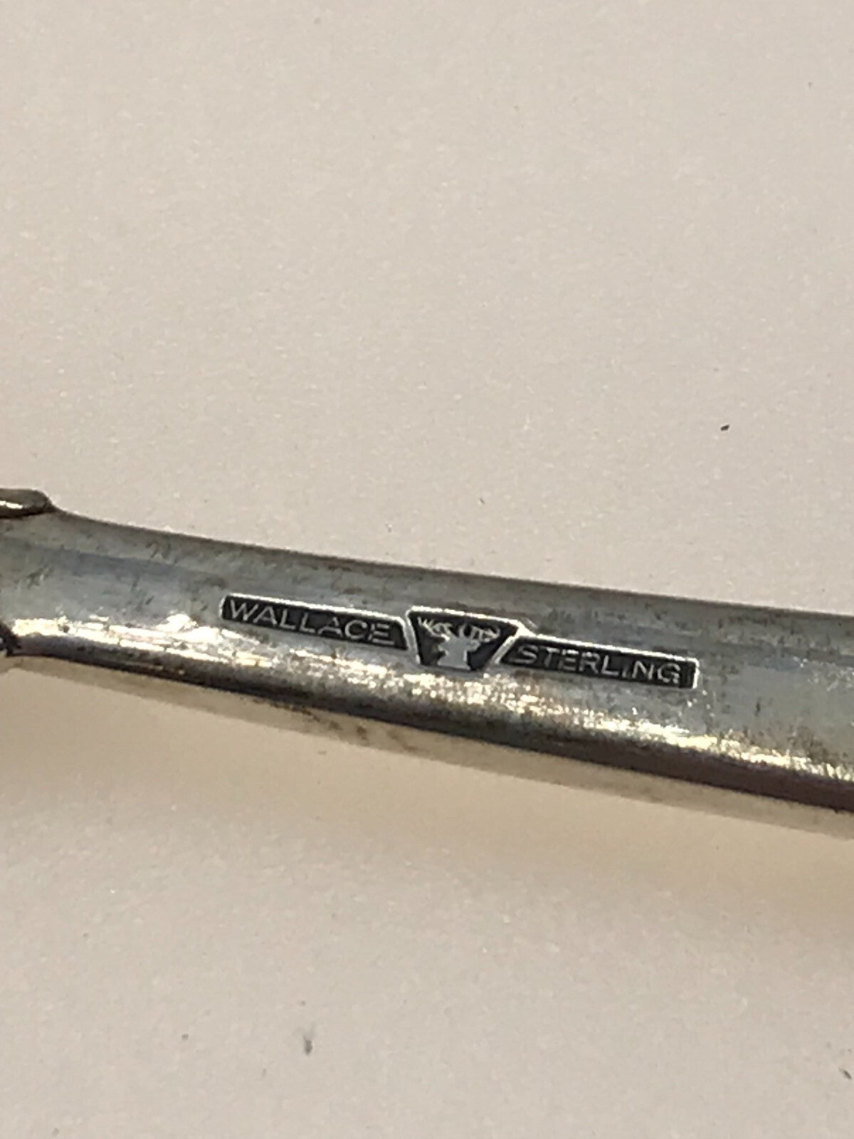 Add a touch of elegance to your collection with this vintage Wallace Grande Baroque sterling silver spoon. Crafted with the finest sterling, this spoon features a stunning pattern that is sure to impress. Its 108.6g weight and 9" length make it a perfect addition to any flatware collection. Whether you're using it for a special occasion or everyday use, this spoon is sure to make a statement.