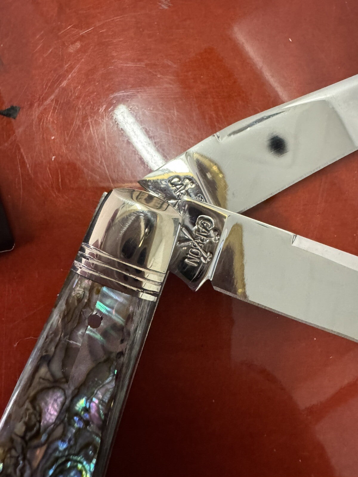 Wendal Carson Fightin Bull pocketknife is a stunning collector's item. Complete in box The 2601m model features a mosaic green handle and a carbon steel clip point and spey point blade. This knife a safe and reliable choice for any occasion.